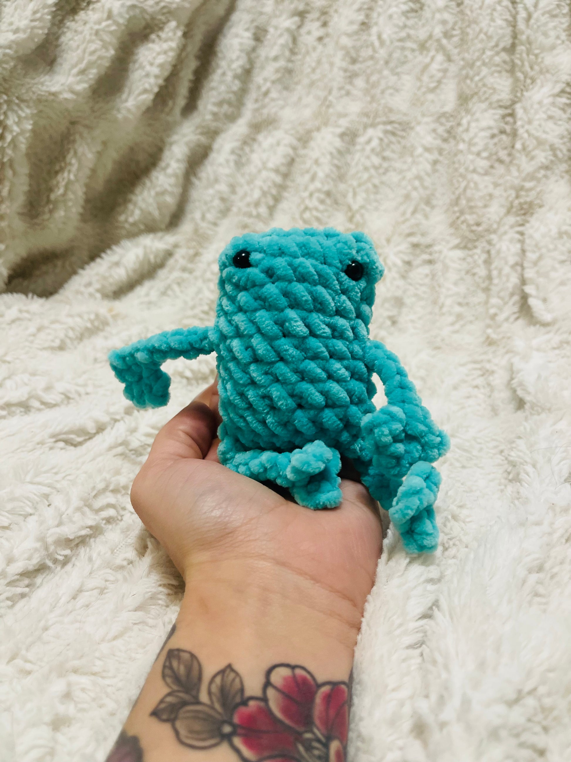 Introduce your little ones to their new favorite companion: the Baby Frog. This hand-crocheted frog is the perfect size for small hands and features safety eyes for added peace of mind. With its adorable appearance and safe design, this little guy is sure to become a beloved toy for your child. Hand wash recommended for easy cleaning.