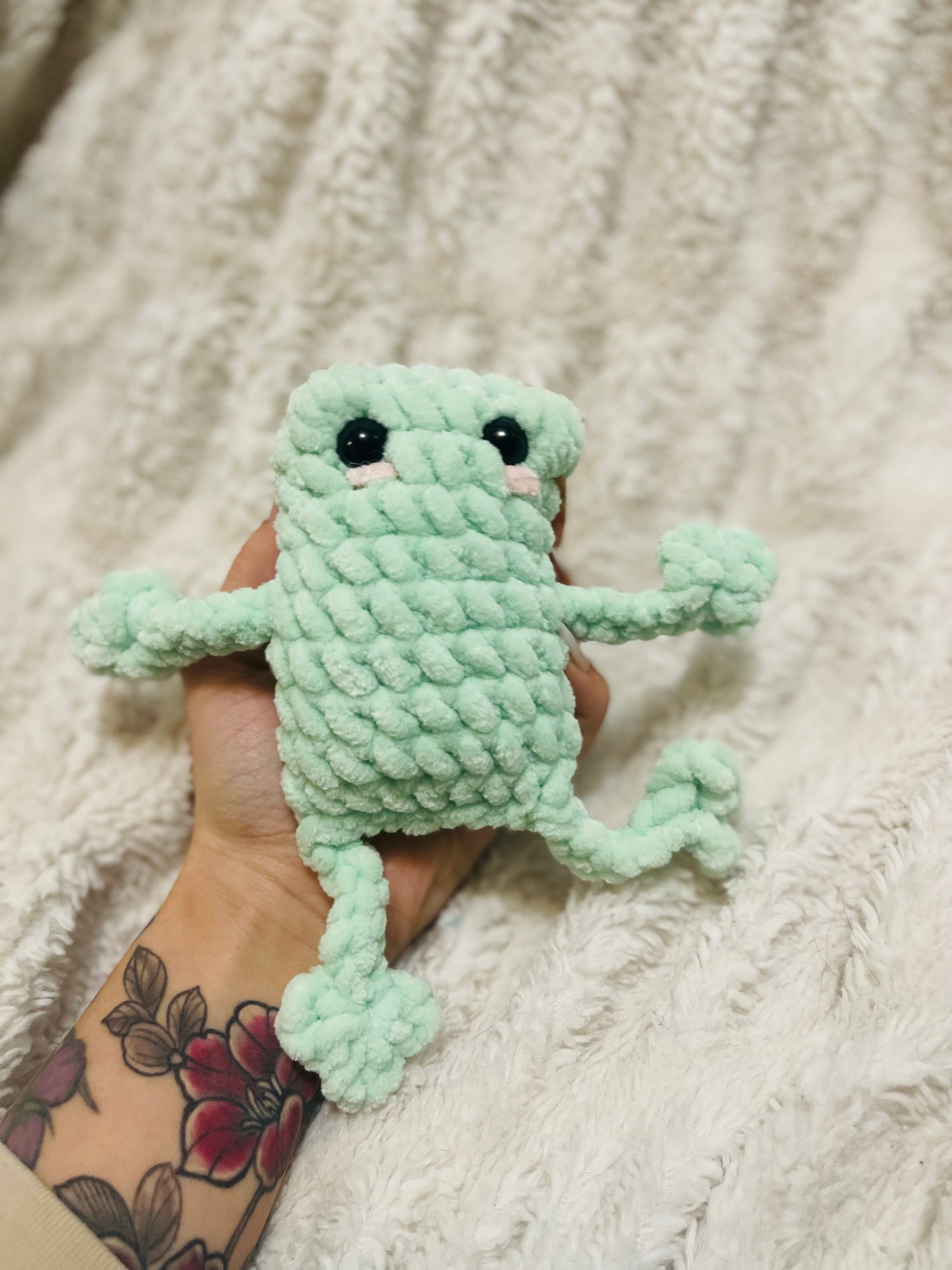 Introducing our meticulously hand-crocheted frog, with safety eyes that are securely snapped in and flattened for your peace of mind. Simply machine wash to keep it clean and safe for your little ones. An adorable addition to any toy collection.