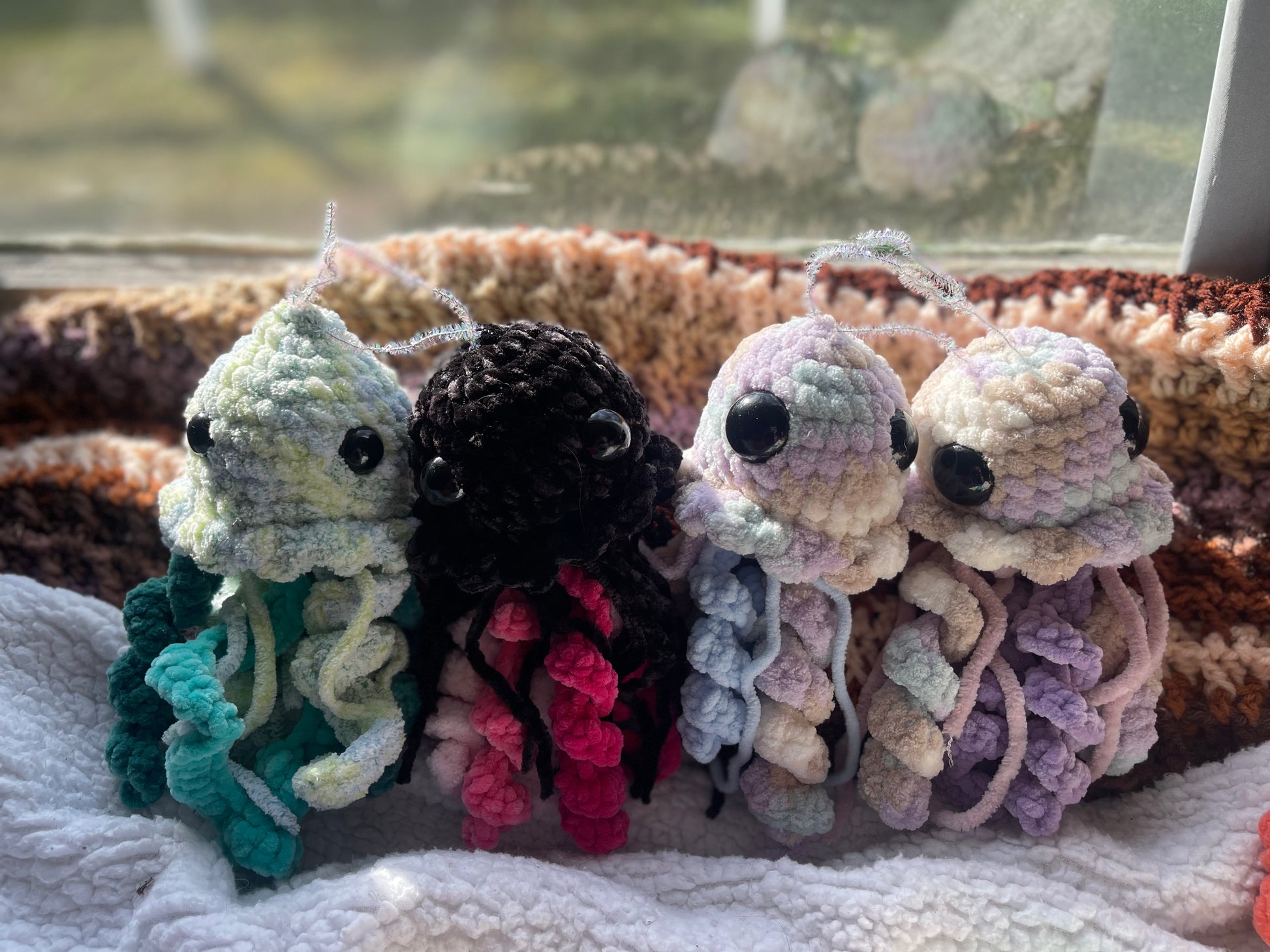 Expertly hand crocheted and snuggly soft, our Jelly Fish is the perfect companion for children and adults alike. With safety eyes that are snapped in and melted flat, this toy ensures safe playtime. And with its machine washable design, cleaning is a breeze. Bring home your own cuddly Jelly Fish today!