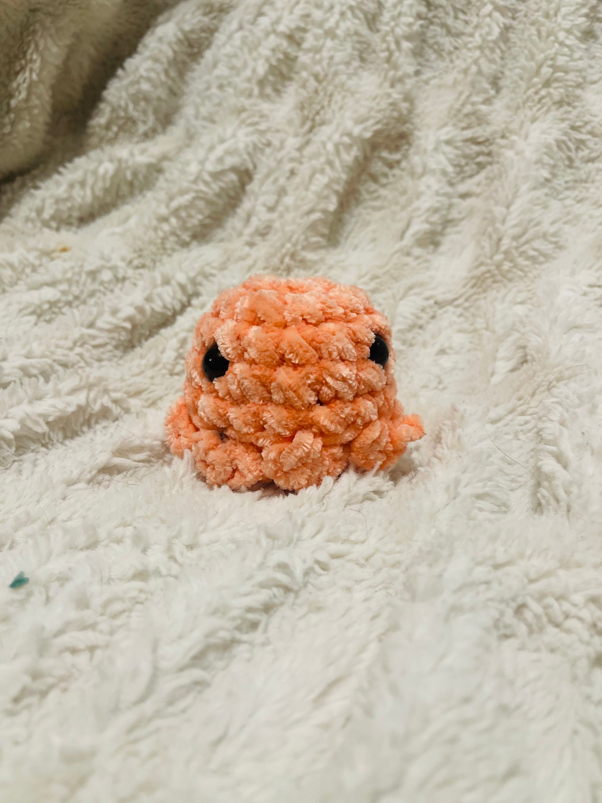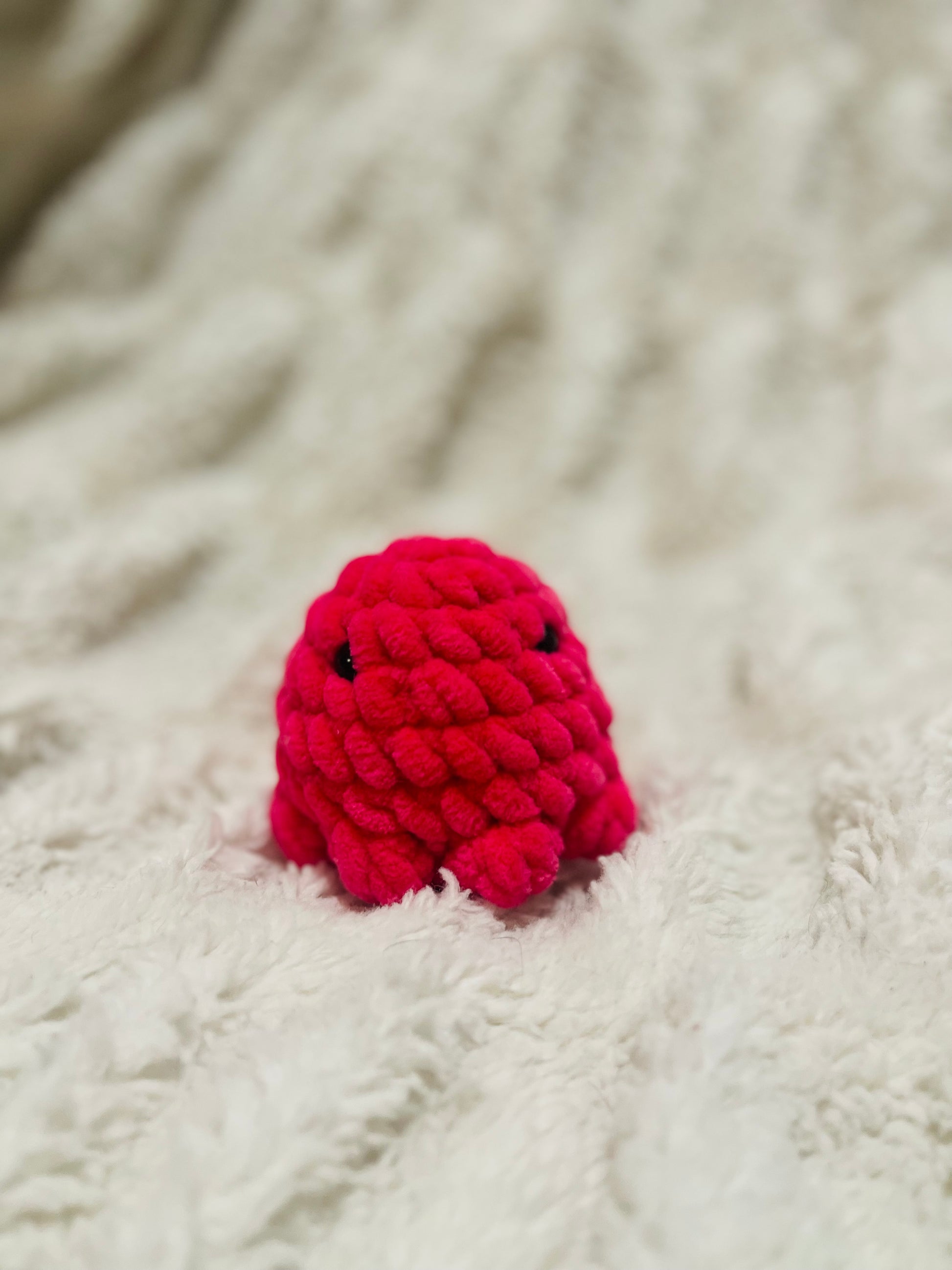 Get ready to have some fun with fuzzy crochet Octos! This small hand-sized octopus is perfect for sensory play and clean up is a breeze with just a quick hand wash. Plus, the safety eyes are snapped in and melted flat for added safety. Dive into endless entertainment with Octos.