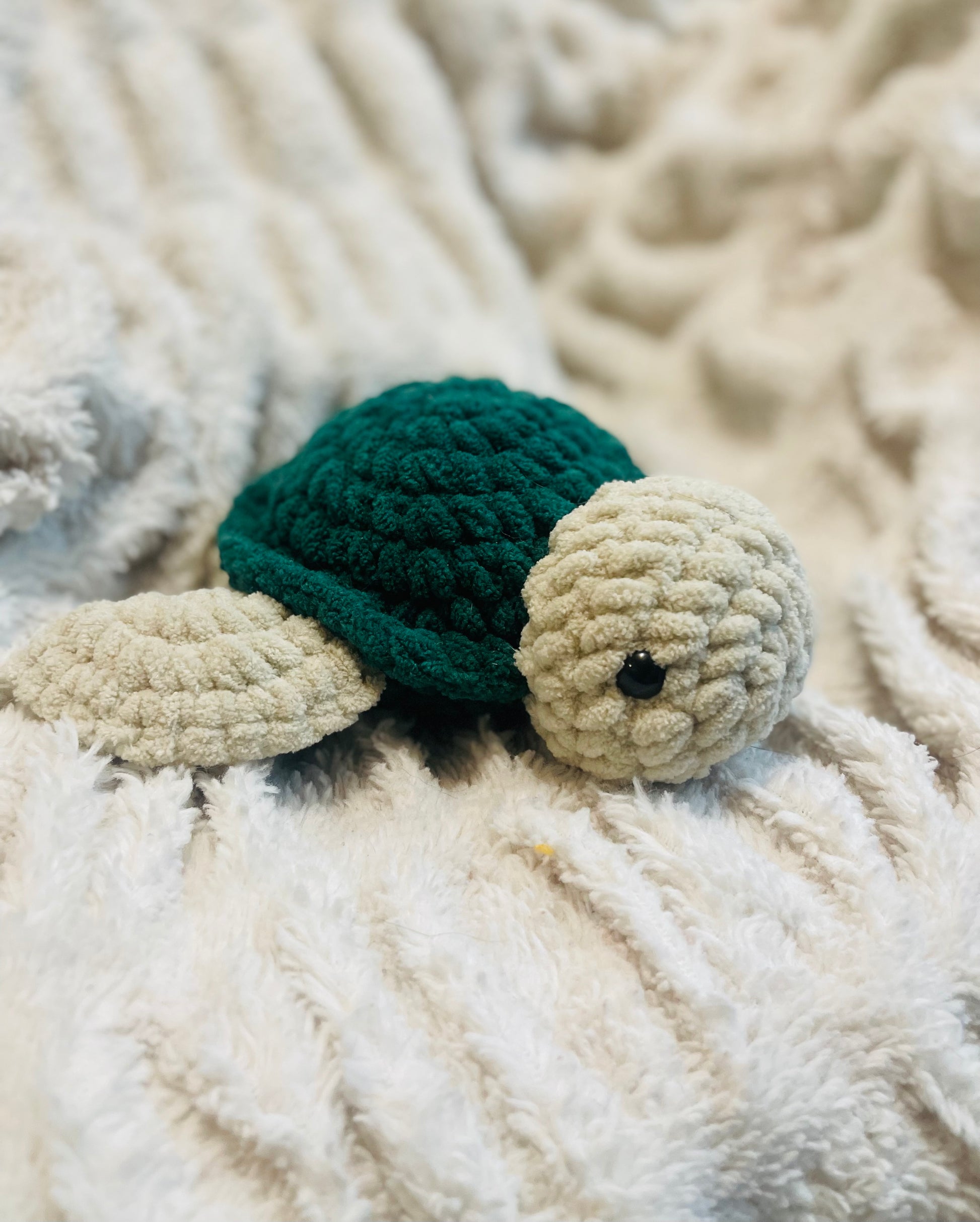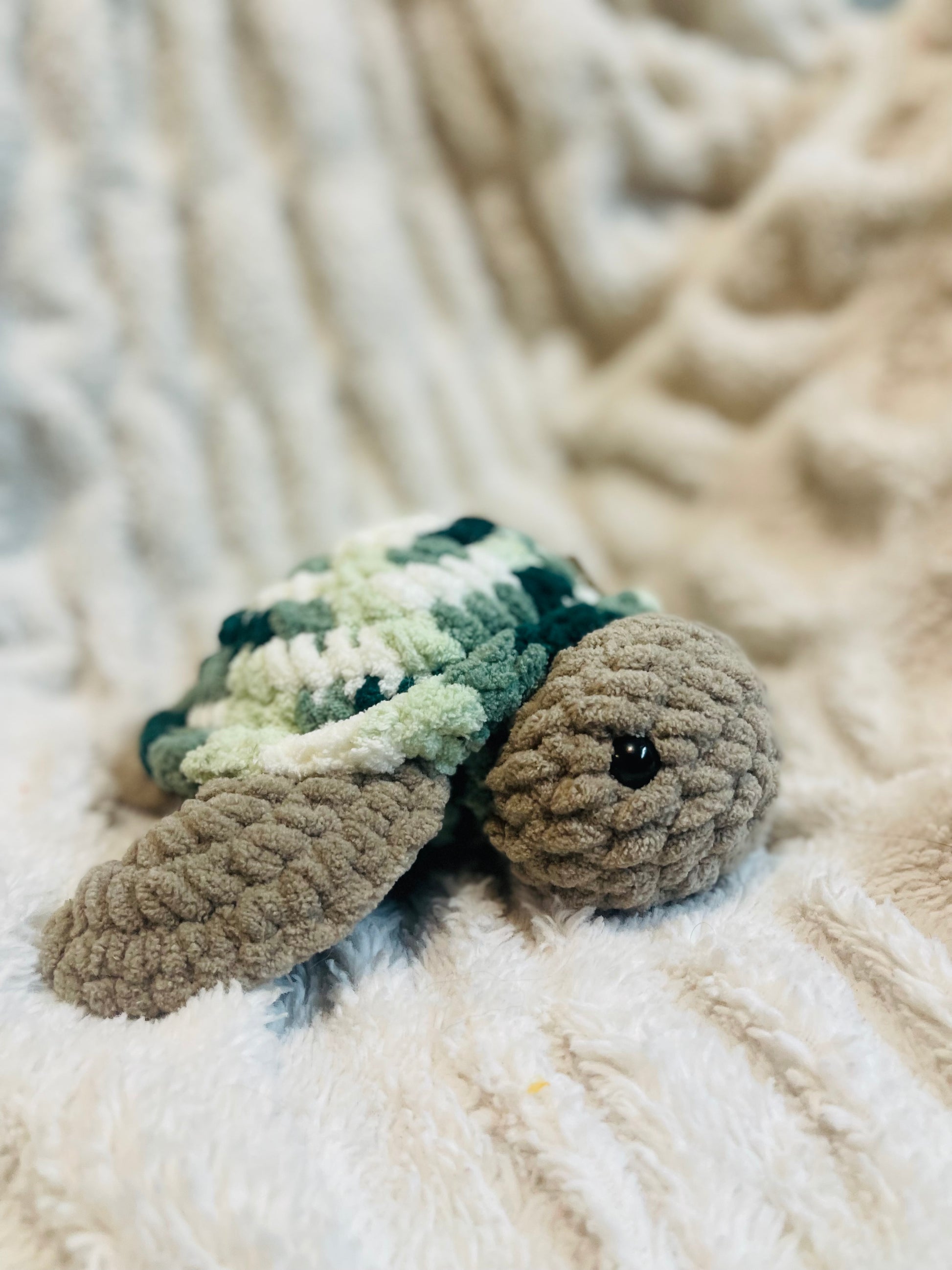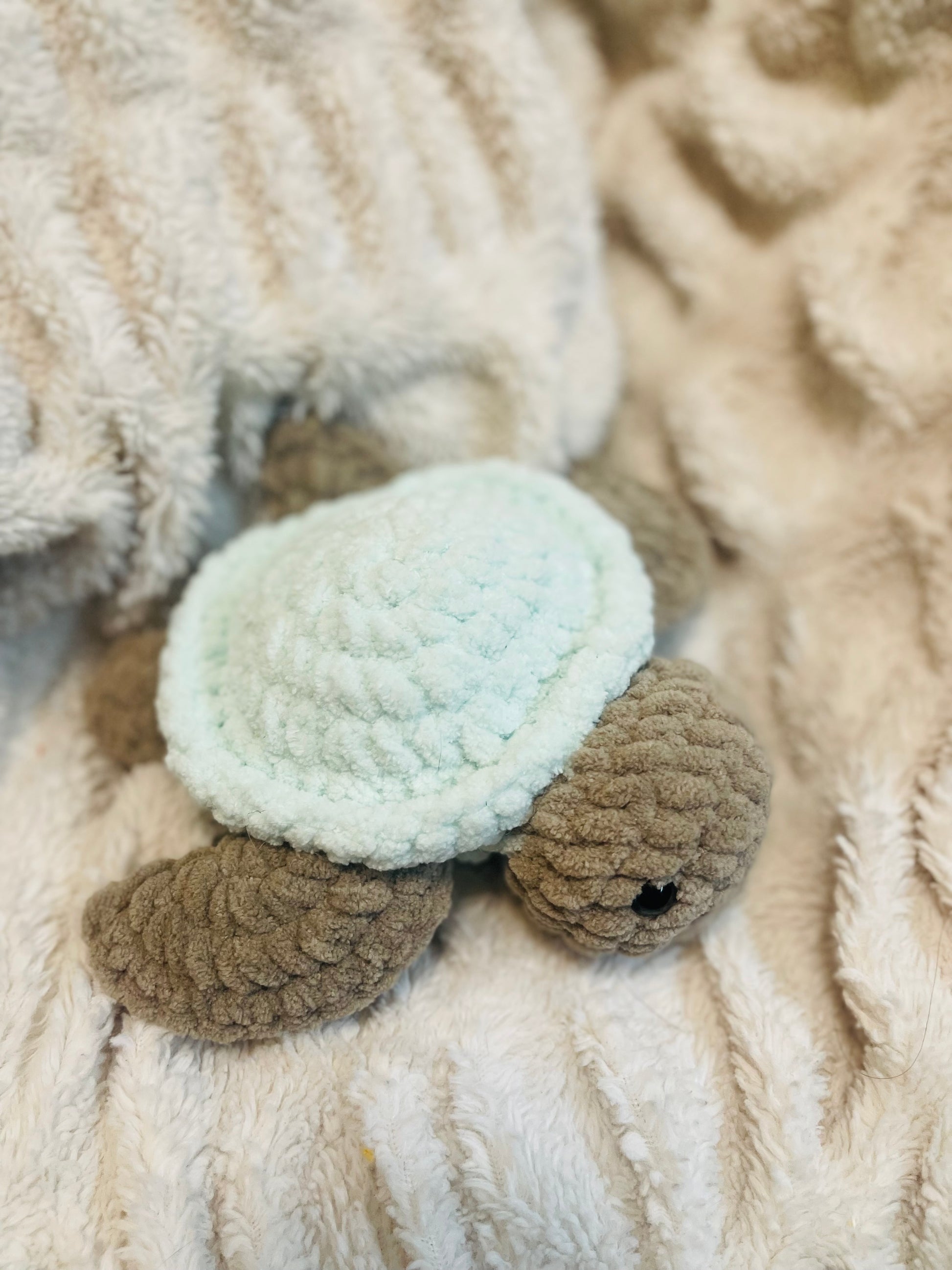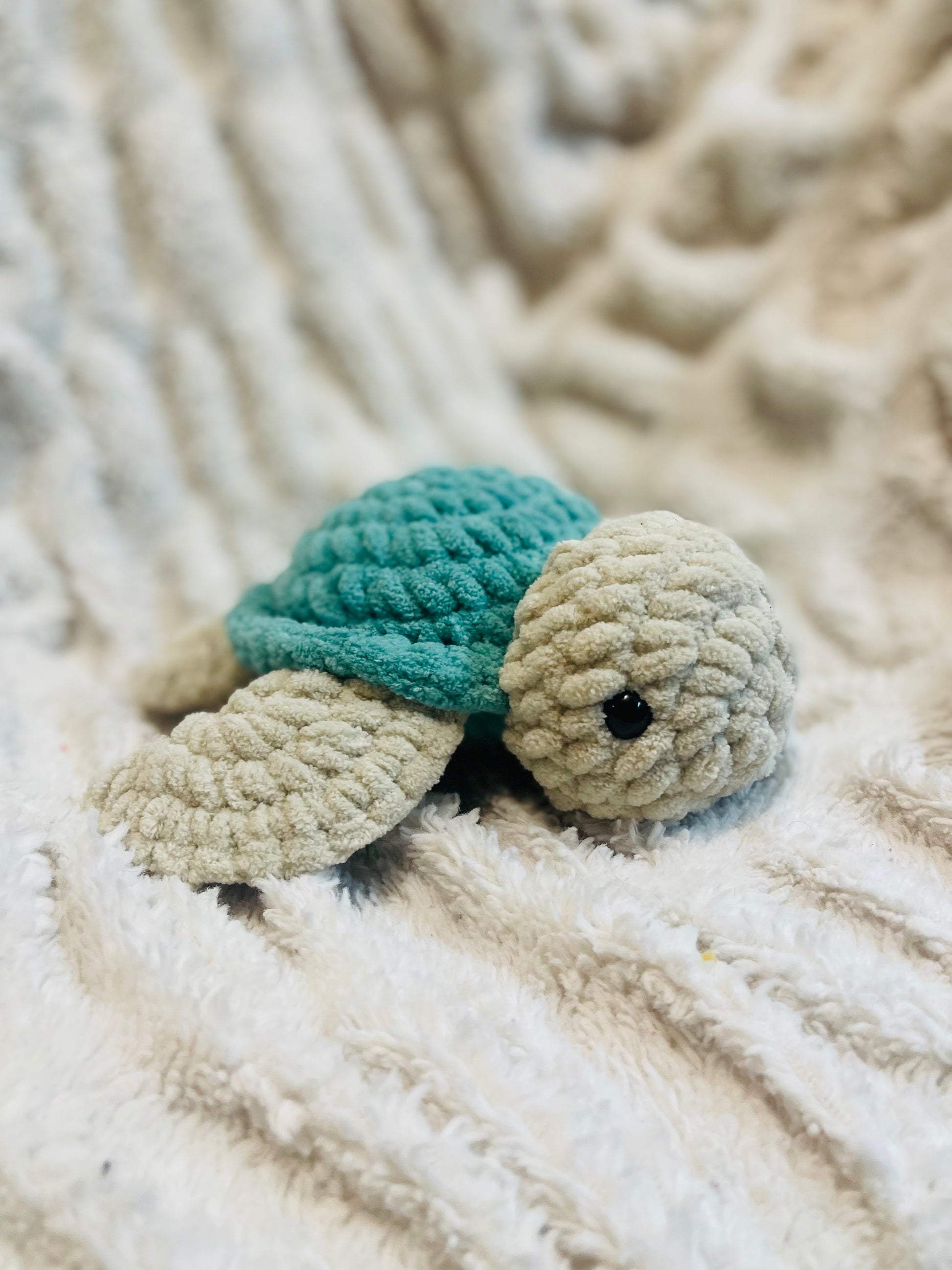 Meet our adorable Sea Turtle! This medium sized, fuzzy friend is perfect for hugging and snuggling. Safety eyes have been carefully melted flat for added security. Choose from a variety of colors with our "Made to order" option. Bring home this charming companion today!