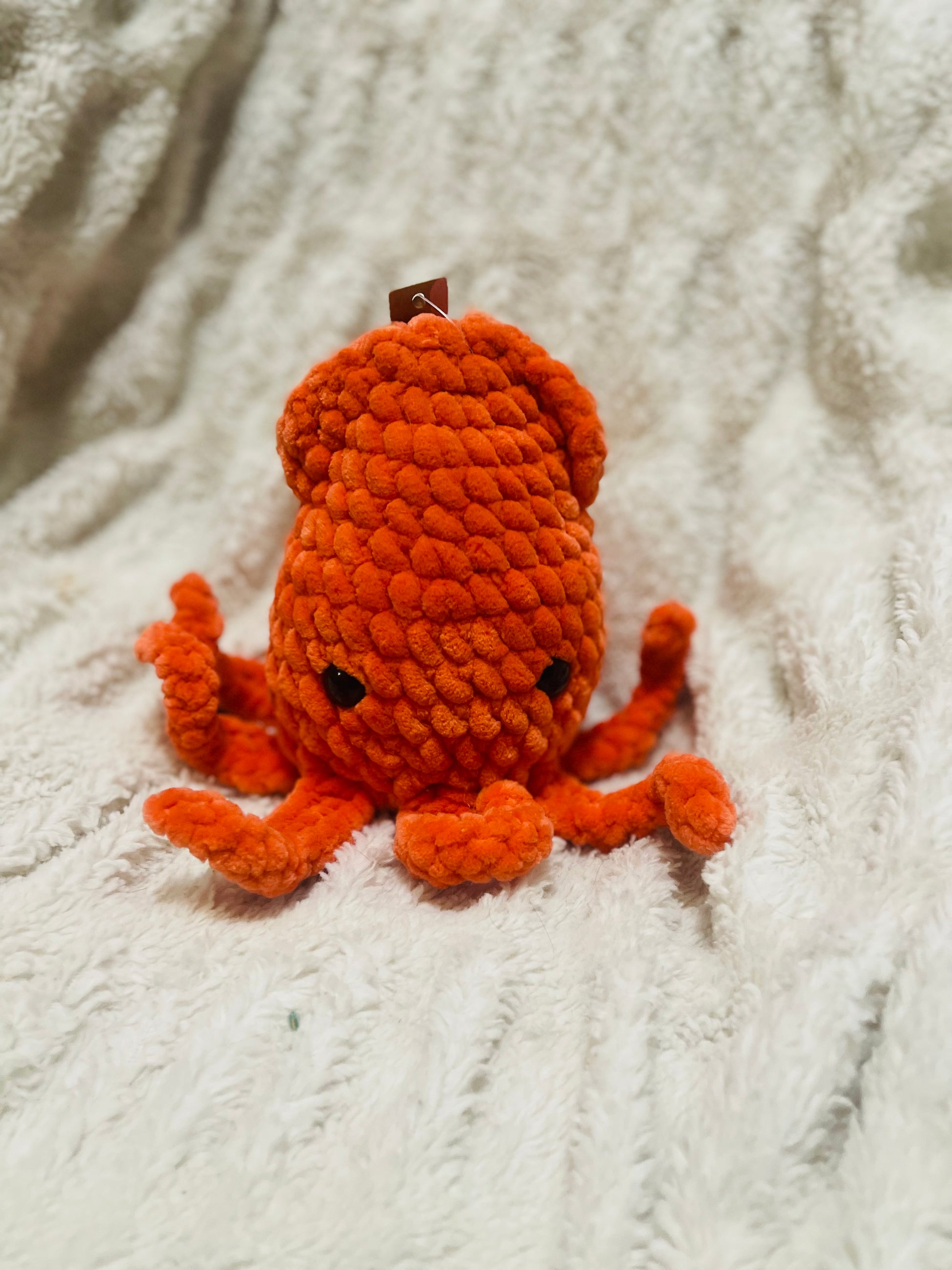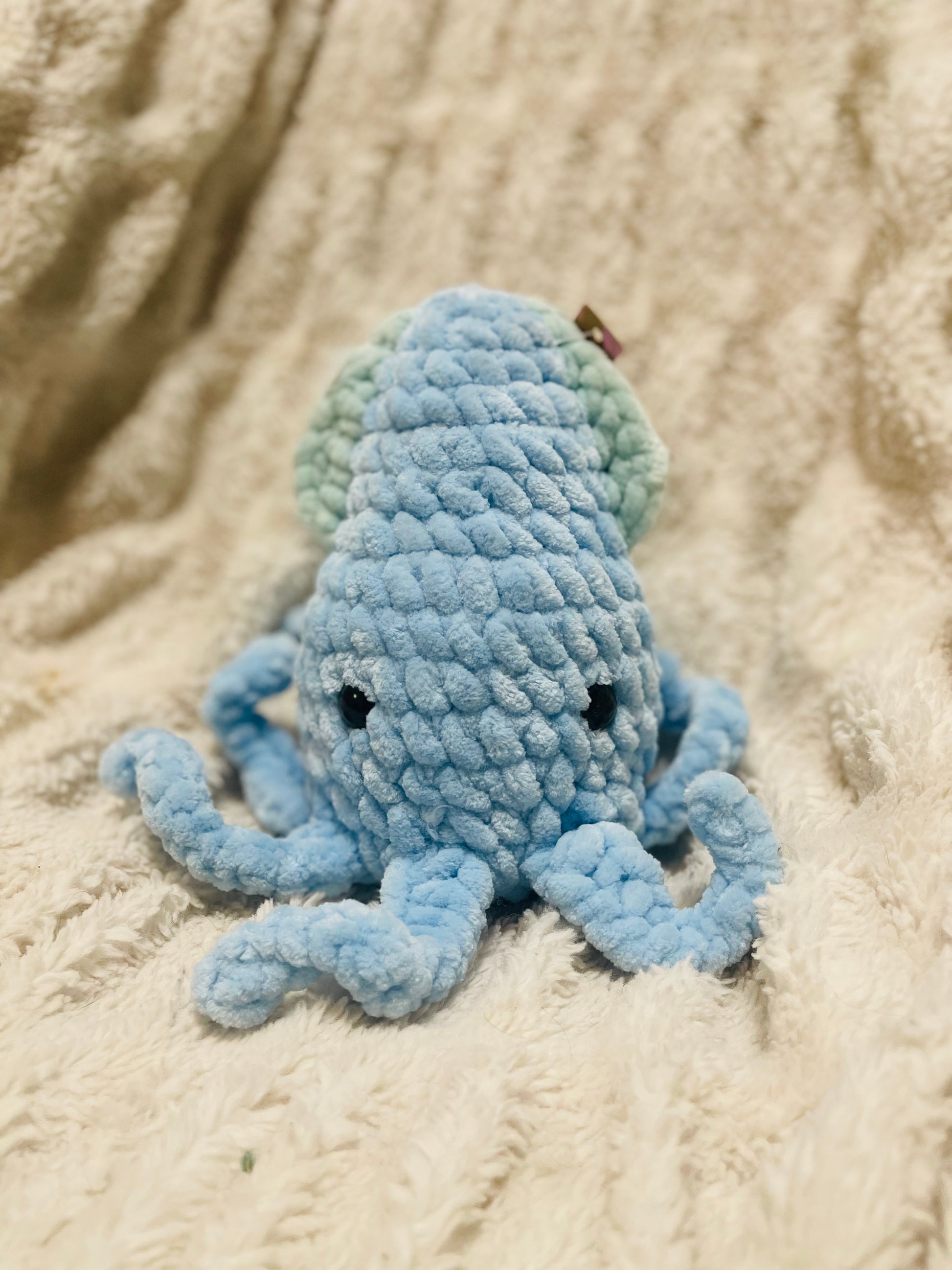 The Squid is expertly crafted with crochet techniques and features safety eyes that are securely attached for added safety. Its super fuzzy and plush material is both durable and easy to maintain, making it a no-fuss addition to any collection. Plus, it's machine washable for added convenience.